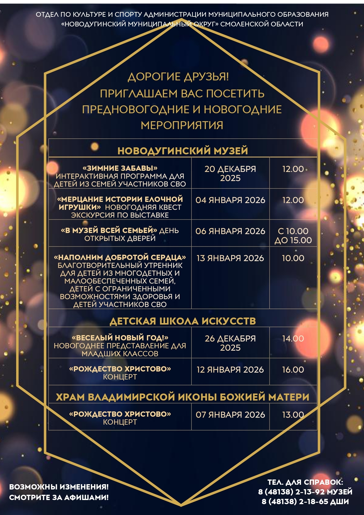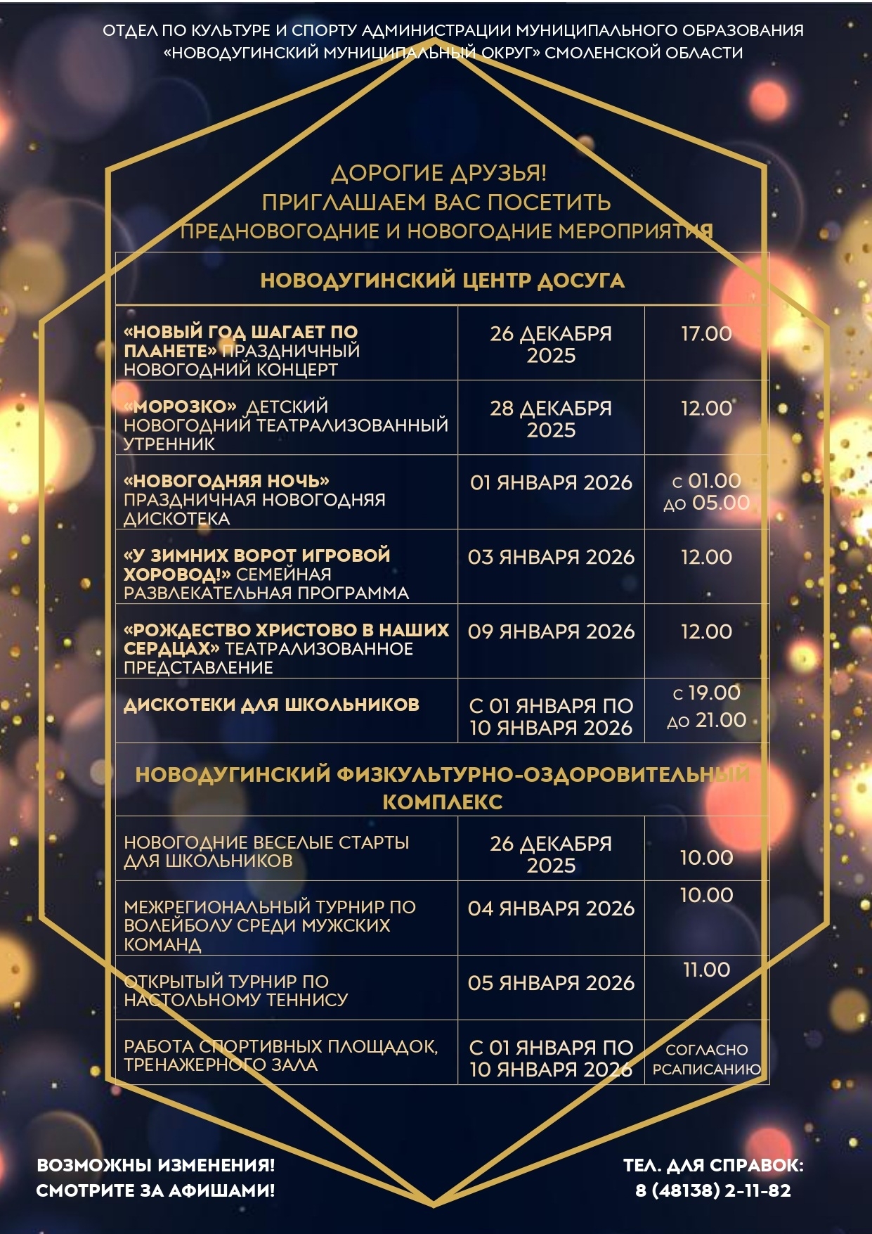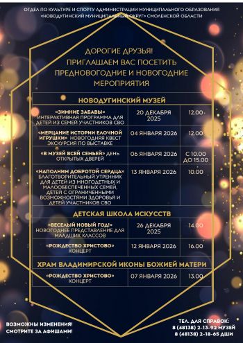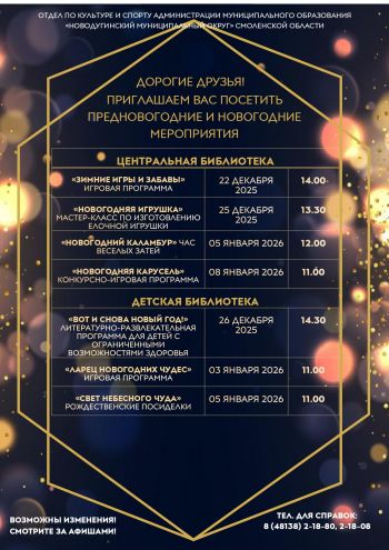 Выбирайте мероприятия по своему вкусу и проведите новогодние каникулы вместе с нами! Мы вас ждем!!!